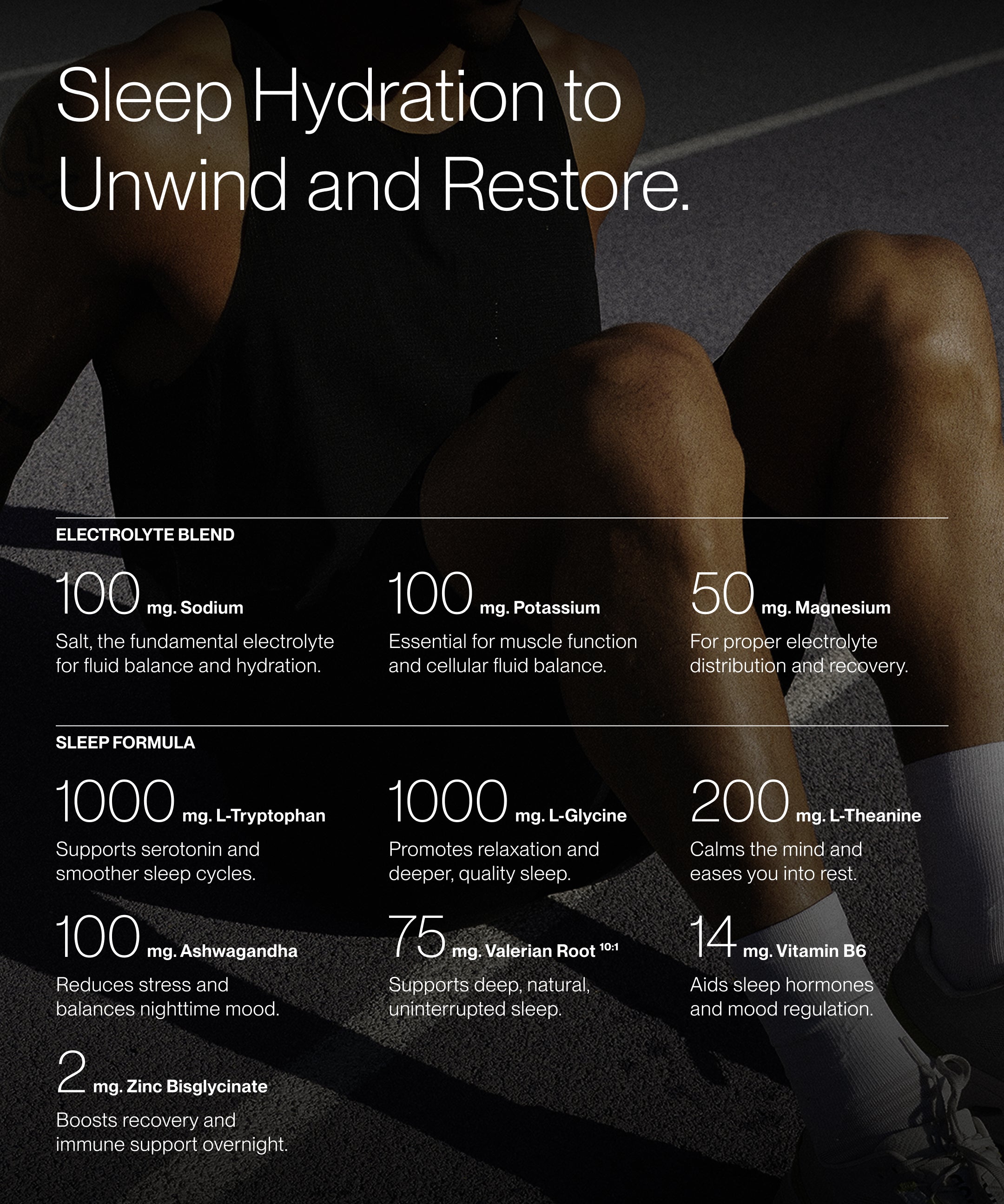 Our Sleep Formula has been specifically developed to aid nighttime hydration, sleep and recovery.