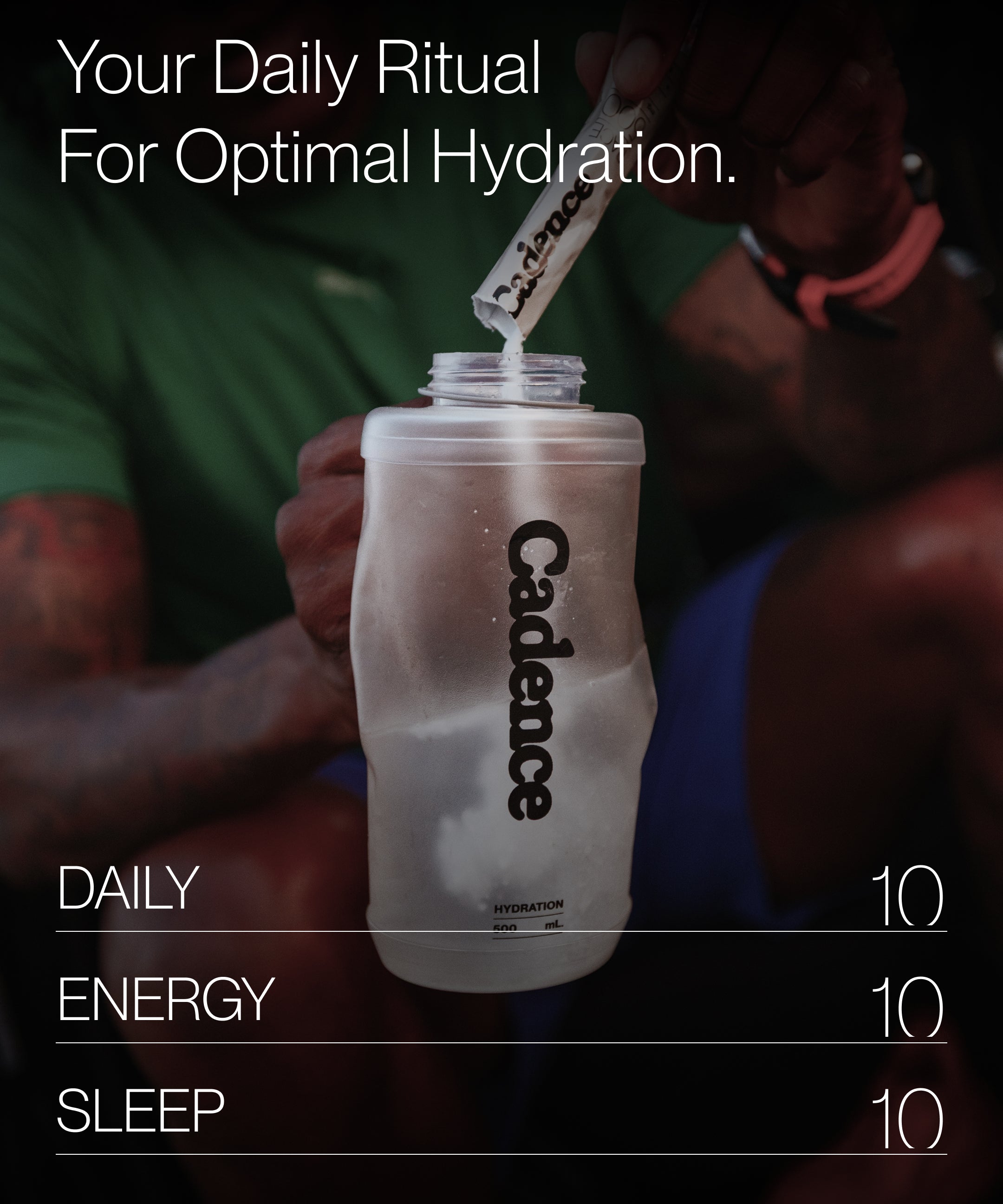 The Cadence Electrolyte Drink was generally designed to be taken at any time of the day. You may find it particularly useful first thing in the morning upon waking or immediately post workout to replenish lost electrolytes.