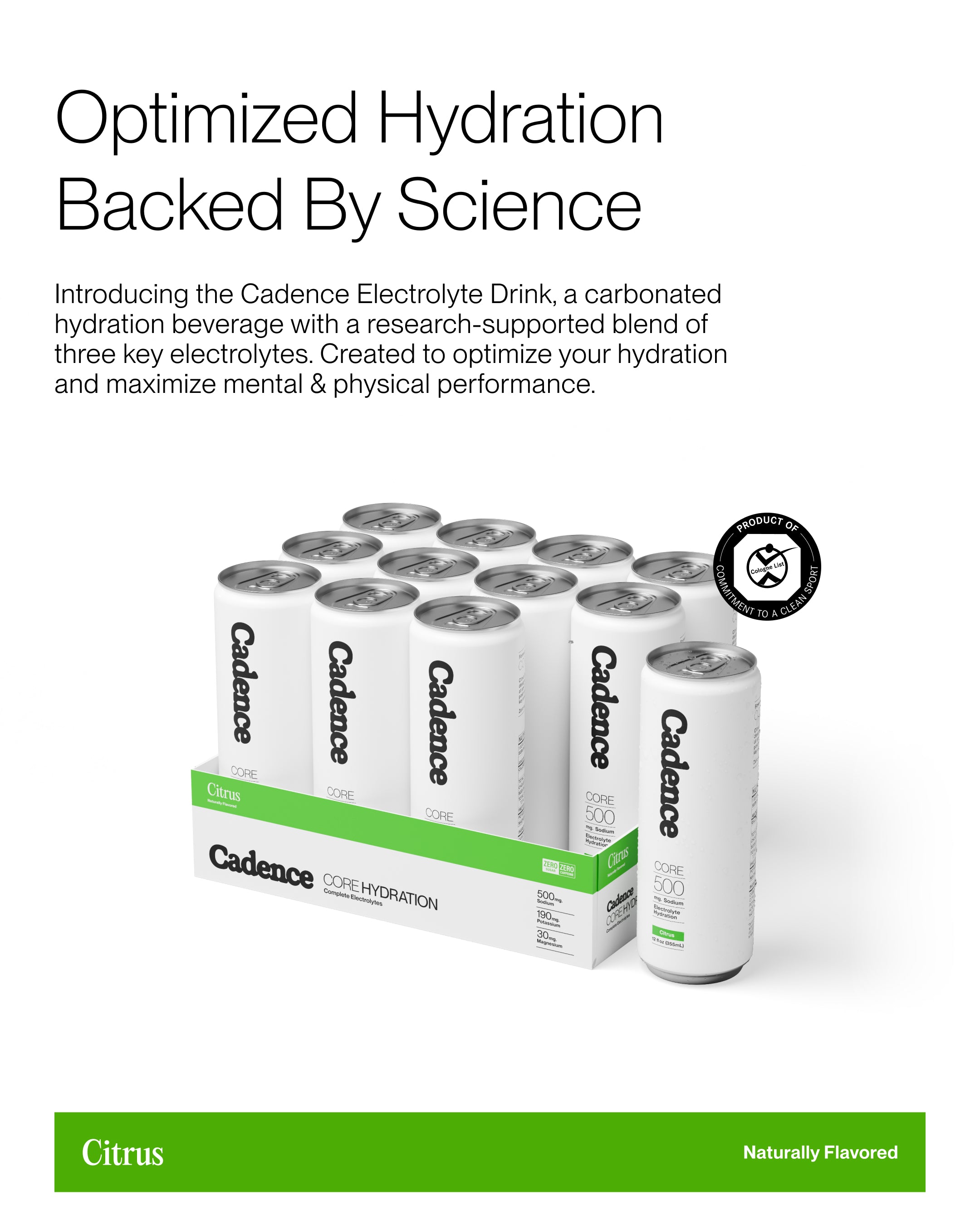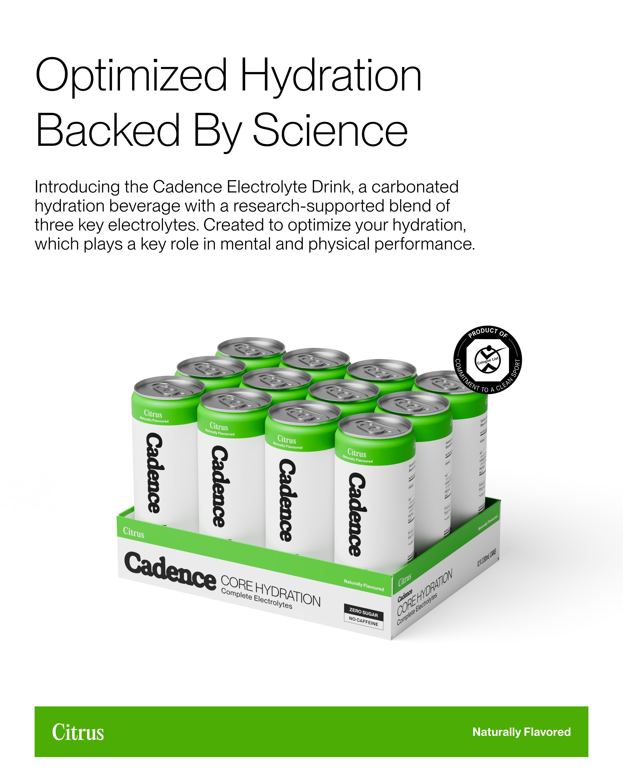 We also suggest that you use Cadence 30 minutes before, during, or immediately after high intensity training to replace the fluids and electrolytes lost in sweat.