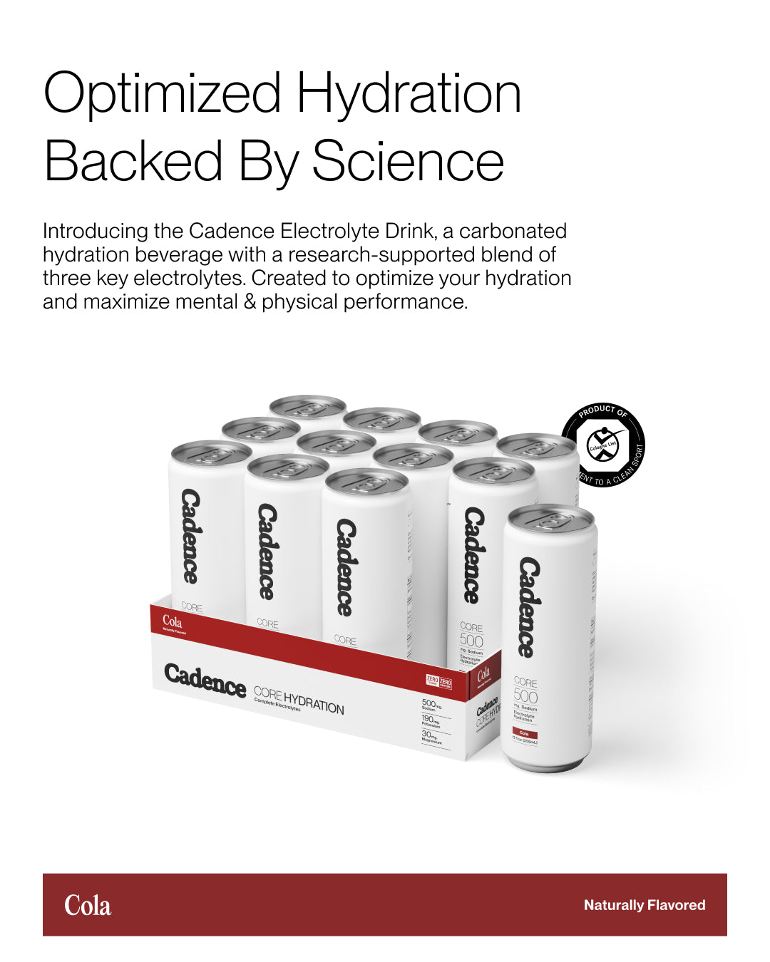 We also suggest that you use Cadence 30 minutes before, during, or immediately after high intensity training to replace the fluids and electrolytes lost in sweat.