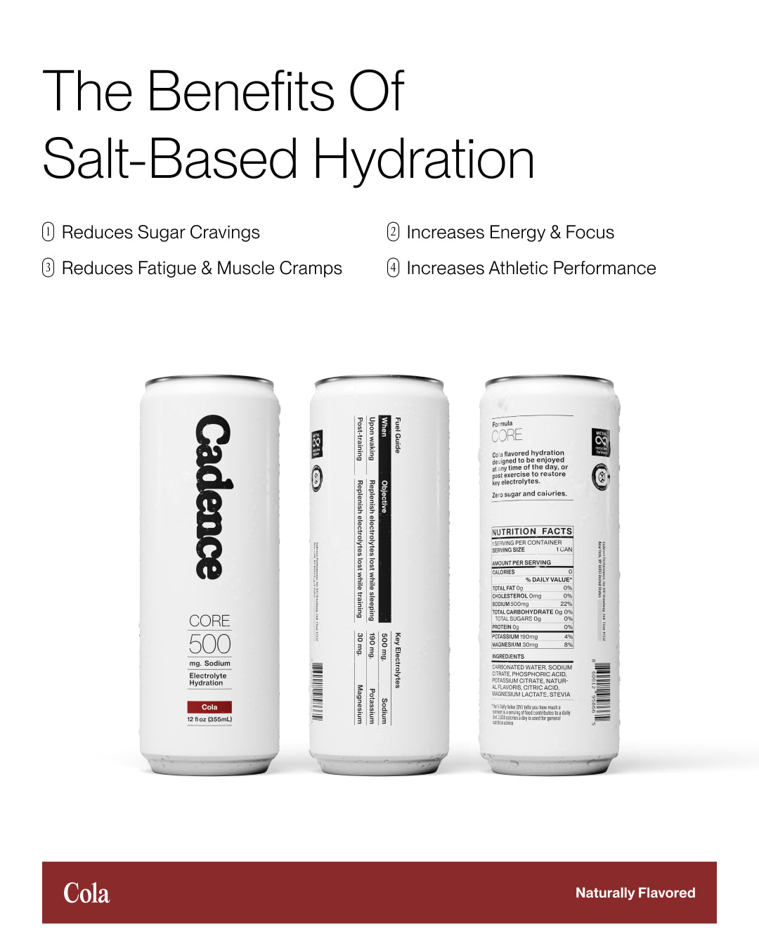 Electrolyte consumption is highly dependent on the individual. It is important to note that Cadence is meant to supplement your electrolyte intake;  it should not be your sole source of electrolytes. We recommend that you acquire most of your electrolytes from whole food sources, however you can supplement with 2 -3 cans per day, depending on your activity level. For any specific guidance on daily salt intake, you should consult your doctor.