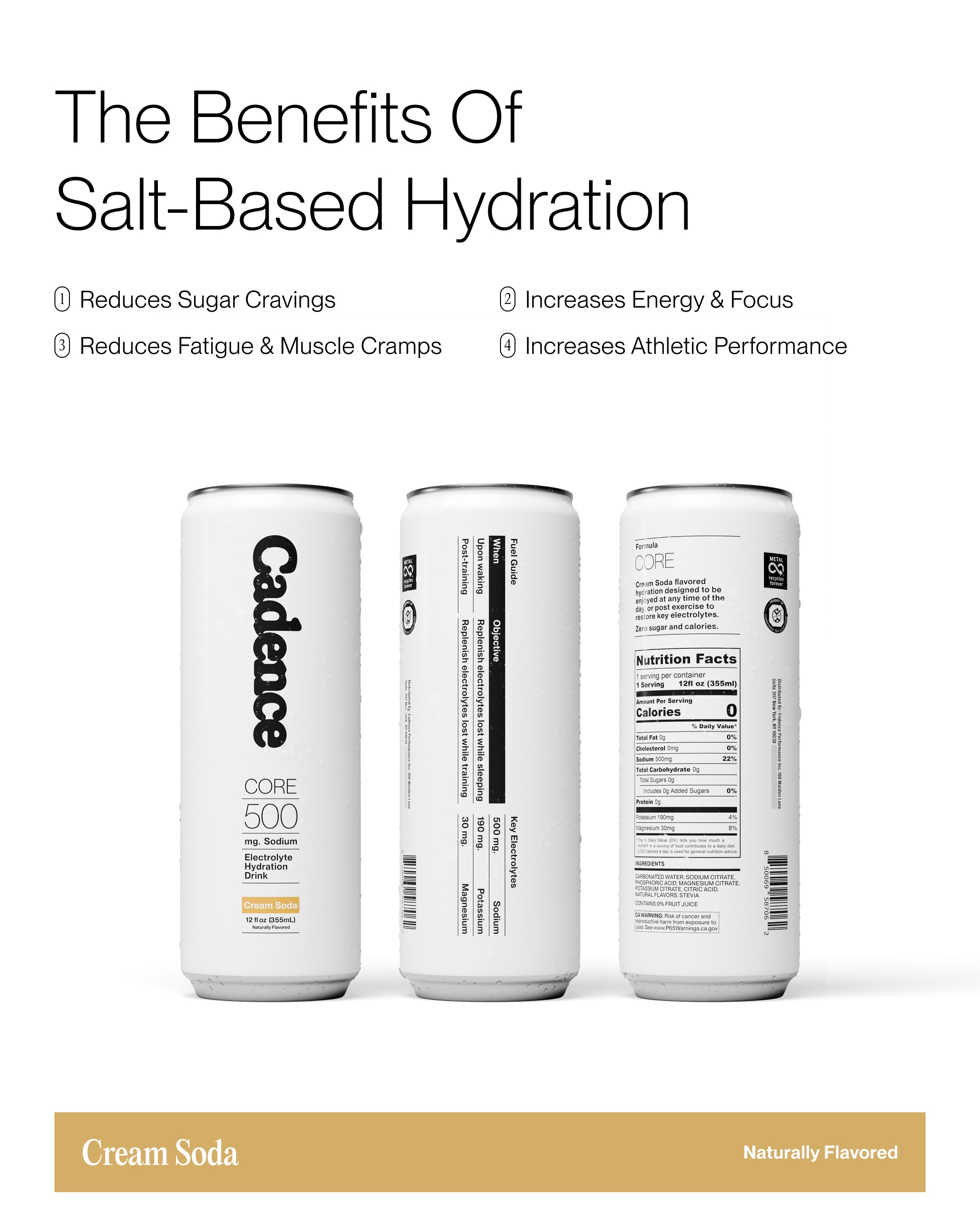 Electrolyte consumption is highly dependent on the individual. It is important to note that Cadence is meant to supplement your electrolyte intake; it should not be your sole source of electrolytes. We recommend that you acquire most of your electrolytes from whole food sources, however you can supplement with 2 -3 cans per day, depending on your activity level. For any specific guidance on daily salt intake, you should consult your doctor.