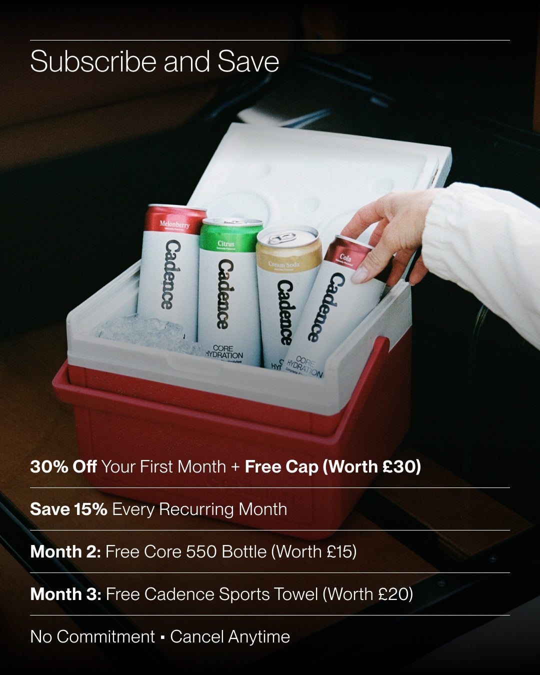 We also suggest that you use Cadence 30 minutes before, during, or immediately after high intensity training to replace the fluids and electrolytes lost in sweat.