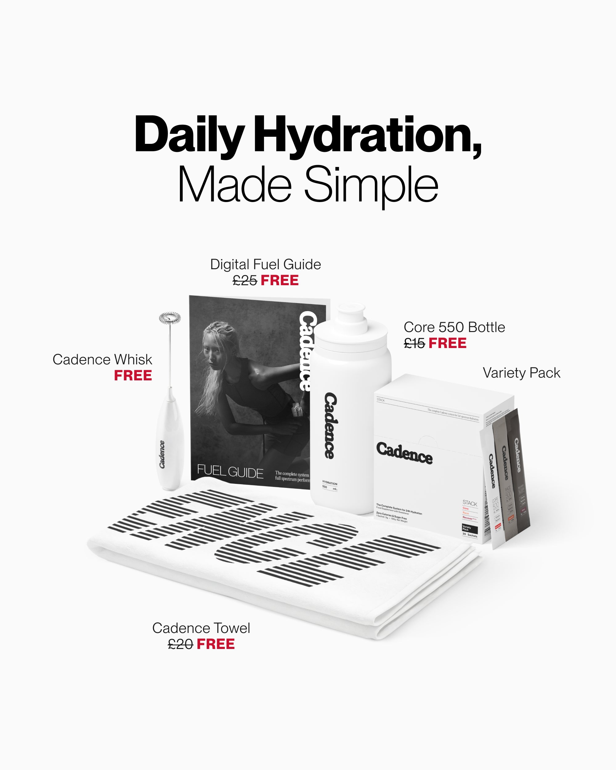 Exercising at moderate to high intensities can result in significant electrolyte losses and electrolyte imbalances, which can negatively impact mental and physical performance. Water alone is not able to replace those electrolytes. Cadence hydration sachets are specifically designed to rapidly restore electrolyte balance and optimise cellular hydration.